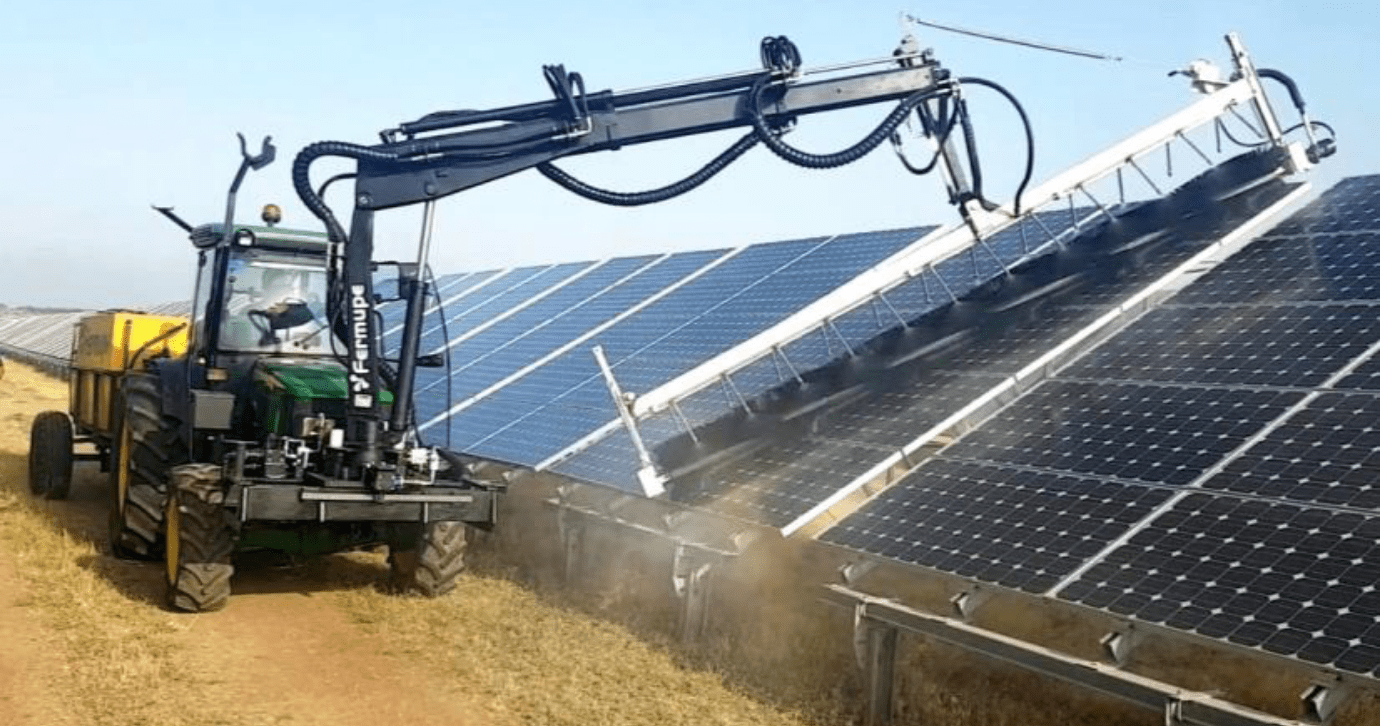 > Limpieza de módulos fotovoltaicos por contacto mediante cepillos rotativos de poliamida